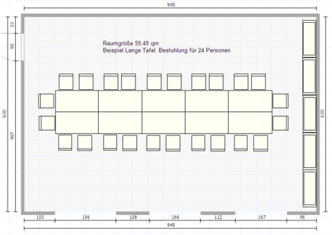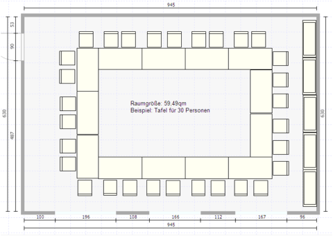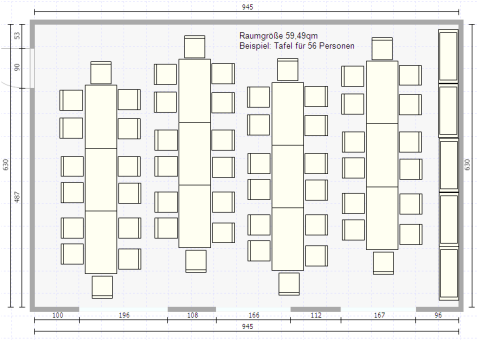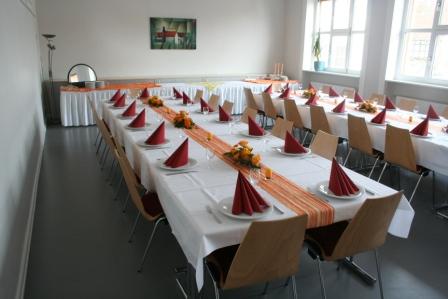 Hier ist ein Beispiel für einen festlich eingedeckten Raum bei uns.
