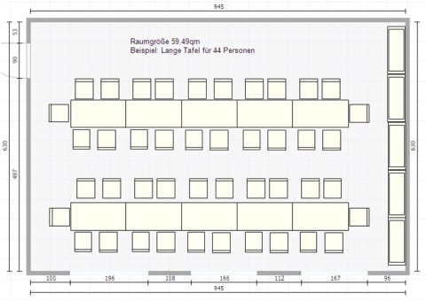 großer Raum: ganztägig 140€, nur halbtags 50€